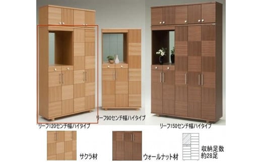 【幅117 奥行39 高さ185】リーフ120ハイタイプ下駄箱(サクラ)