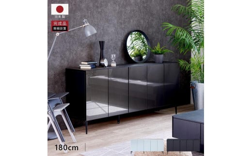 サイドボード 180cm リスボン グラスブラック(GBK)×マーブルブラック【モーブル/大川家具】