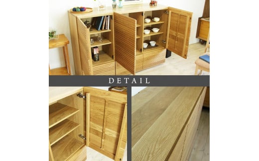 【大川家具】無垢材 キャビネット 本棚 収納家具 収納キャビネット 風雅 幅1460 ホワイトオーク 扉付き収納 可動棚 天然木 北欧 国産 完成品【設置付き】