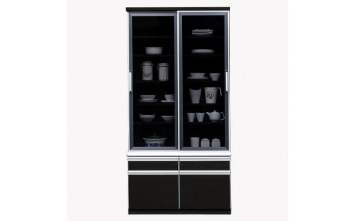 【開梱設置】 響 食器棚 幅100cm 食器棚 引き戸 完成品 ブラック 食器 収納 大川家具 ダイニングボード