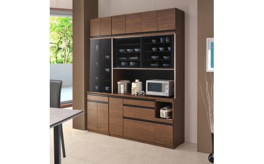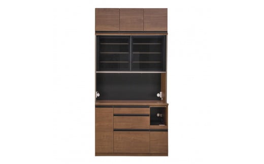 (ブラウン)【開梱設置】 カリーナ キッチンボード 上置付 幅120cm 耐震 引き戸 食器棚 オープンボード 完成品 カップボード ダイニングボード 120幅 大川家具
