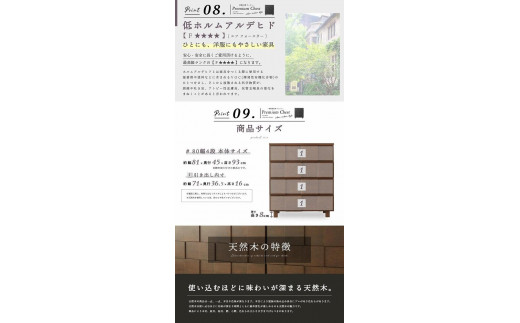 80幅4段 ブラウン 茶 チェスト タンス 国産 大川家具 完成品 おしゃれ モダン レトロ