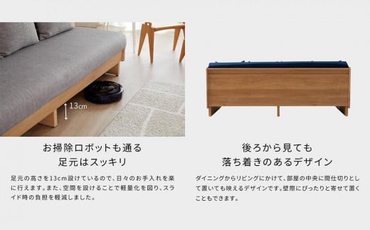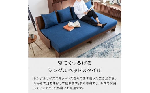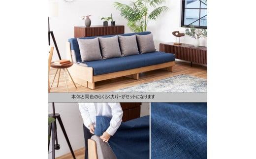 トゥデイ2 ソファベッド 200cm 同色らくらくカバー付き:NA×ネイビー【モーブル】【大川家具】