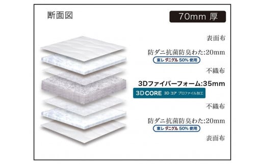 ●詰め物:防ダニ抗菌防臭わた(東レ ダニゲル?50%使用)、ポリエチレン樹脂100%「3D CORE」