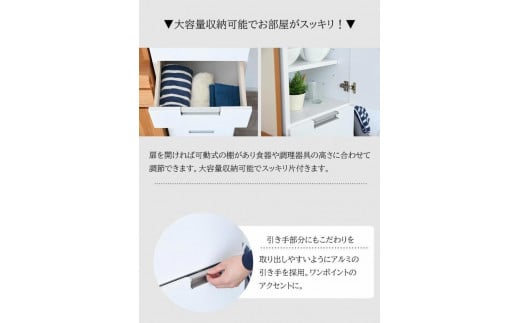 隙間収納 キッチン収納 食器棚 幅30cm コンパクト 扉収納 引き戸 引出し スリム 白 鏡面 大川 家具