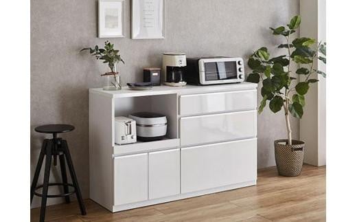 【開梱設置】キッチンカウンター レンジ台 アンサンブル 幅139.1 鏡面ホワイト
