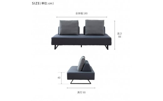 幅180cm×奥行90cm×高さ88cm(座面高さ40cm)