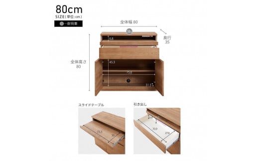 天板:強化シート化粧繊維板・オーク無垢材・MDF