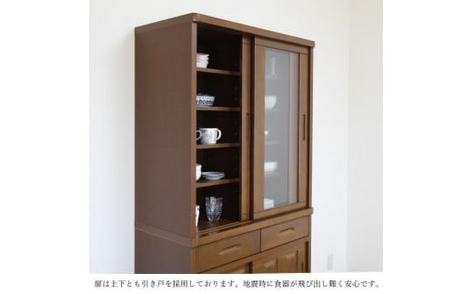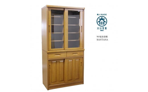 90幅食器棚 引き戸タイプ ナチュラ色 キッチン収納 リビング収納 カップボード ダイニングボード