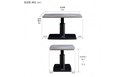 サイズ :幅120cm×奥行80cm×高さ56.1~71.9cm