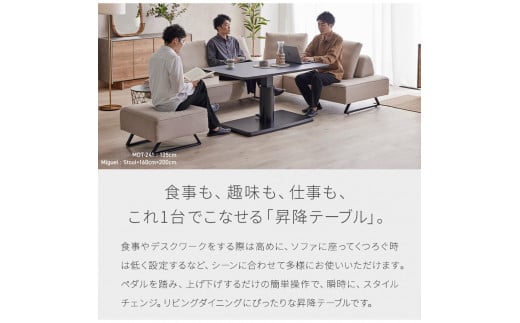 MDT-241 昇降テーブル 幅120 ダイニングテーブル <グレー>【モーブル】【大川家具】