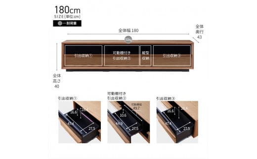 サイズ :幅180cm×奥行43cm×高さ40cm