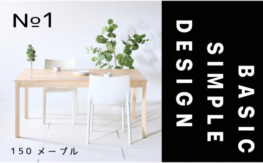 【シンプルでスタンダードな飽きのこないデザイン】NO1テーブル 150 メープル 無垢材 国産 ダイニングテーブル 大川家具