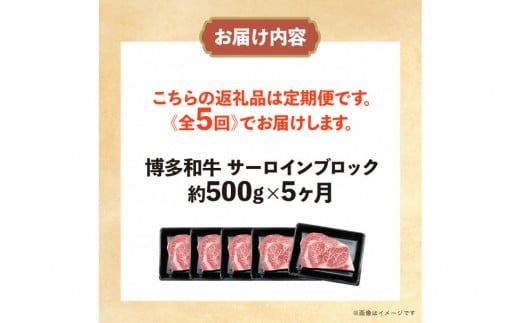 博多和牛 サーロインブロック 定期便全5回 計約2.5kg(約500g×5回)