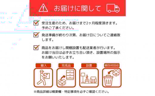 受注生産品のため、お届けまで約2ヶ月ほどお時間をいただく場合があります。詳しい納期はお問合せ下さい。