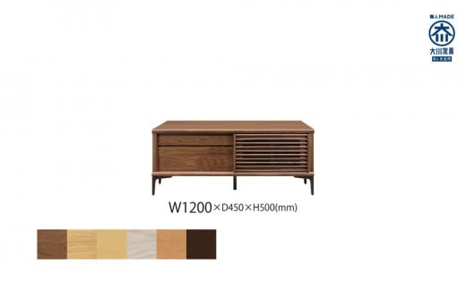 無垢リビング家具ソリド(ローボード テレビ台・TVボード)120cm(金属変形脚)【6色】