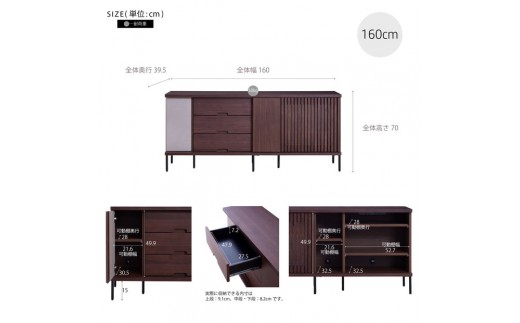 サイズ:幅160cm×奥行39.5cm×高さ70cm