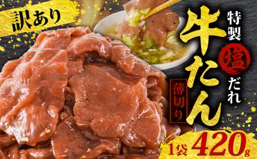 訳あり 特製塩だれ 薄切り 牛たん 420g | タン中 タン先 焼肉 焼き肉 BBQ キャンプ 常備 惣菜 冷凍 小分け 時短 家飲み 一人暮らし パーティー 定期便 リピーター続出 高評価 贅沢 ご褒美 愛媛県 松山市