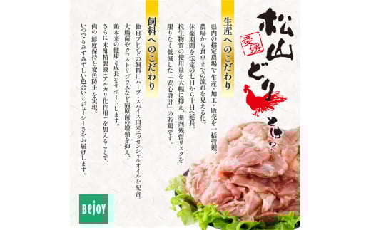 【定期便3回】松山どり もも肉 2kg×2パック×3回 計12kg | 定期便 国産 鶏肉 小分け 若鶏 冷凍 愛媛県 松山市 株式会社ビージョイ