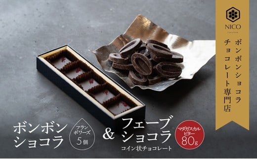 ボンボンショコラ5個(フランボワーズ)&フェーブ80g(コイン状チョコレート)/NICOchocolaterie チョコレート チョコレート専門店 ボンボンショコラ スイーツ お菓子 贈答用 ギフト お取り寄せ 福岡県 小郡市