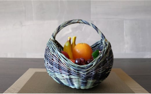手染めし、オリジナルのカラーで編み上げたバスケットです。