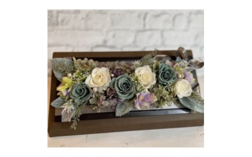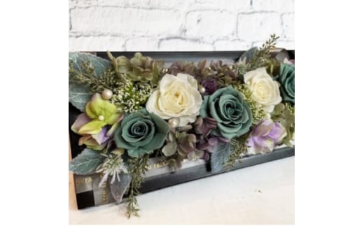 プリザーブドフラワーをメインに、湿度が高い日本の気候に合わせて、アーティフィシャルフラワー(造花)を交えてアレンジすることで、より長くお楽しみいただけるものとなっております。