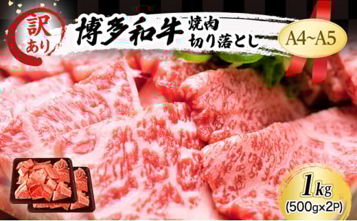 訳あり A4~A5 博多和牛 焼肉 切り落とし ( 肩ロース・バラ ) 1kg (500g×2p) 訳アリ 肉 牛肉 やきにく ※配送不可:離島