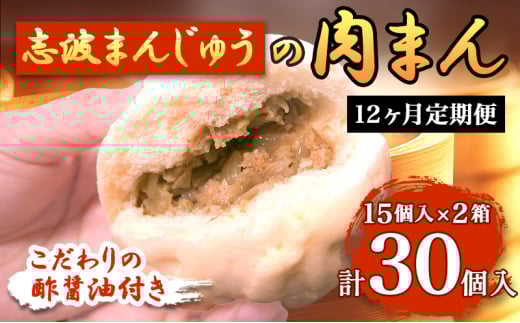 定期便 12ヶ月 肉まん 志波まんじゅうの「肉まんじゅう」 15個入り×2箱セット 酢醤油付 肉 12回 お楽しみ