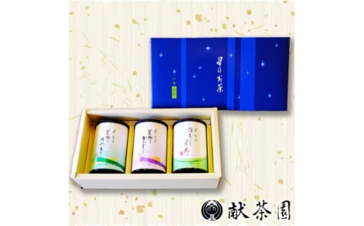 7. お茶 八女の深むし・煎茶 星のお茶 詰め合わせ 3缶 セット 化粧箱入り 八女茶 茶 詰合せ 緑茶