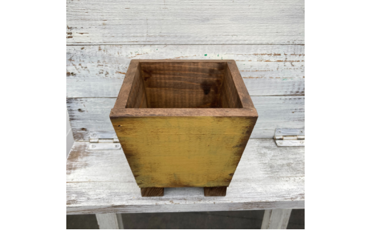 小郡市在住の作家制作の木製プランターにガジュマルが植えてあります。