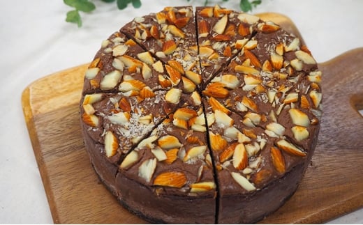 ベイクドチーズケーキの生地にココアパウダーを加え、くるみを練りこんで焼き上げました。土台はアーモンドココアクッキー、トッピングにもクラッシュアーモンドをたっぷり。甘さ控えめなチーズケーキのコクとココアの香り、それにくるみとアーモンド・2種類のナッツの食感が楽しめる贅沢なチーズケーキです。1カット当りの糖質は2.9g(ゼロカロリー甘味料分3gを除く)