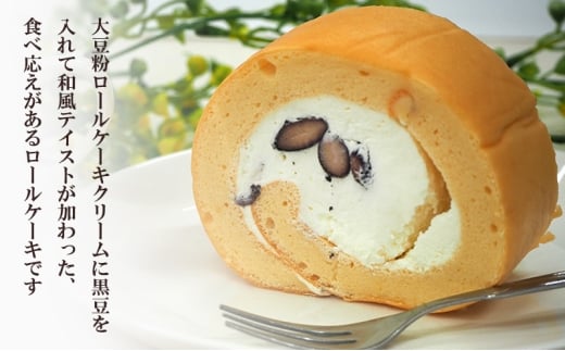 低糖質な大豆粉ロールケーキのクリームに黒豆を入れて巻きました。和風テイストが加わってボリュームもアップ、食べ応えがあるロールケーキです。お好みの大きさにカットしてお召し上がり下さい。2本セットでお届けします。