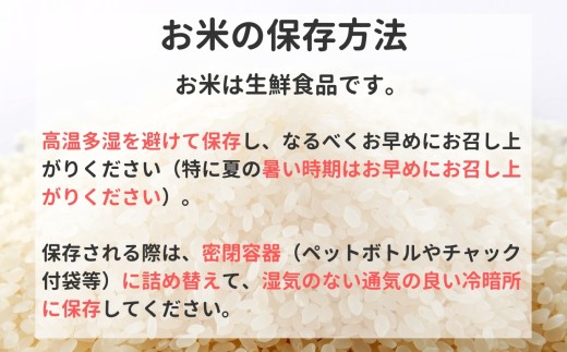 ※お米は生鮮食品です。高温多湿を避けて保存し、なるべくお早めにお召し上がりください(特に夏の暑い時期はお早めにお召し上がりください)。