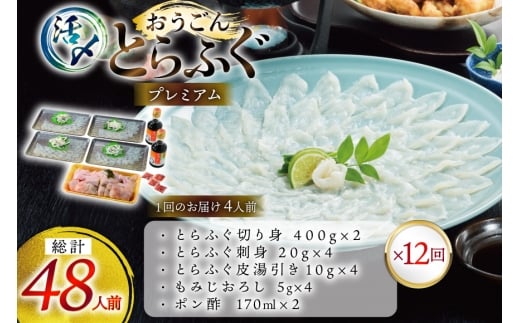 ふぐ 刺身 ふぐ鍋セット 活〆 おうごんとらふぐ プレミアム セット 4人前 12回 定期便 [松永水産 長崎県 平戸市 hr42bgy400152] ふぐ刺し とらふぐ フグ 河豚 てっさ てっちり ふぐ鍋 湯引き 魚介 さかな お刺身 刺身用 さしみ 冷凍 海鮮