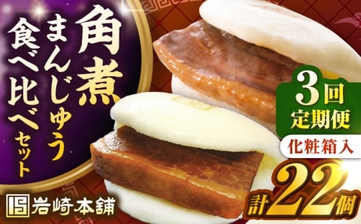 【全3回定期便】【化粧箱入り】長崎角煮まんじゅう (12個)& 大とろ角煮まんじゅう(10個) 《壱岐市》【岩崎本舗】冷凍 豚 豚角煮 角煮饅頭 簡単調理 おやつ お取り寄せ 長崎 [JHA058]