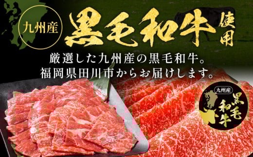 九州産黒毛和牛は厳選された部位のみを使用、やわらかい食感と深いコクが特長です。