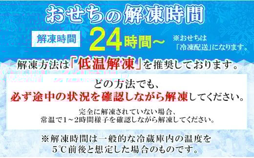 ※おせちは生ものです。日持ちのしない食材を含め、様々な具材がありますので開封後はできるだけ早めにお召し上がりください。
