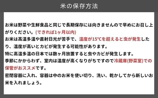 夏期間:精米日から1ヶ月/冬期間:精米日から2ヶ月(法律上の賞味期限設定義務はありません)