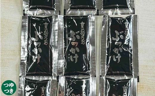 ・ぶっかけつゆ(小麦、大豆含む)(国内製造)、ぶどう糖果糖液糖、食塩、みりん、砂糖、水あめ、さば節、かつお節、かつお調味エキス、たん白加水解物、こんぶ/調味料(アミノ酸等)アルコール、カラメル色素、甘味料(ステビア、カンゾウ)