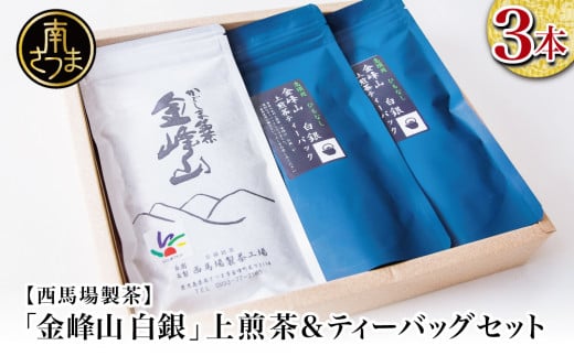上煎茶「金峰山 白銀」の茶葉と便利な水出しティーバッグのセットです。