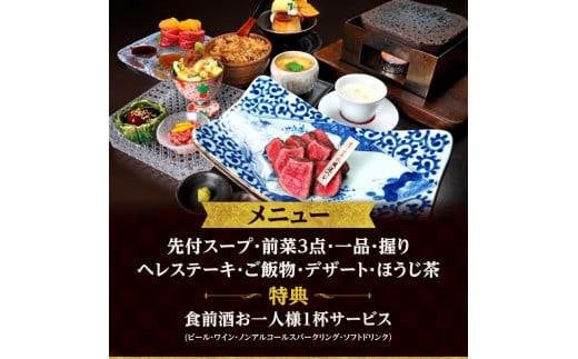 黒毛オリーブ牛牝ヘレステーキディナーコース 2名様×1枚 サービス提供地:香川県高松市
