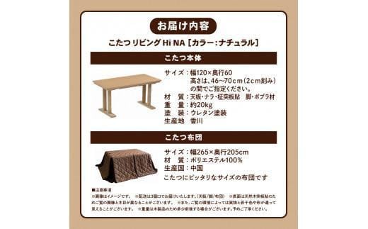 ※このこたつはテーブル高さが、46cm~70cm (2cm刻み) の間でご指定いただける商品です。