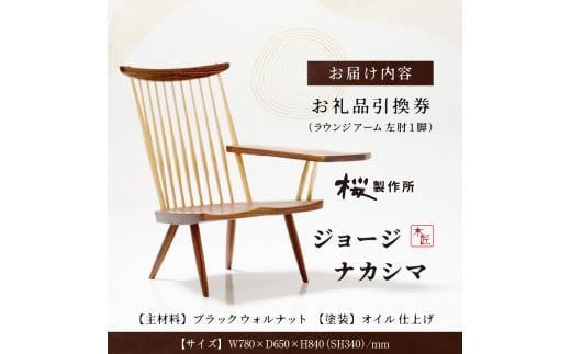 受注生産 香川県高松市 桜製作所 ジョージナカシマ ラウンジアーム 左肘 1脚