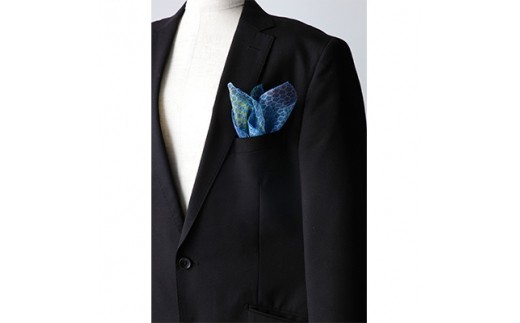 世界一(※)薄いシルク“妖精の羽”に塩縮加工を施し、加賀友禅で無限染をしたポケットチーフです。薄さと塩縮、加賀友禅のマリア―ジュをお楽しみください。
