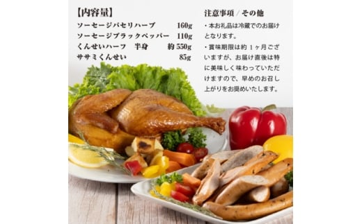 川俣シャモ くんせい詰め合わせ 3~4人前_しゃも 軍鶏 地鶏 燻製 スモーク ソーセージ ササミ セット 食べ比べ 美味しい 人気 送料無料【1064183】