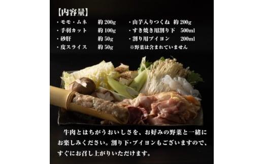 川俣シャモ すき焼きセット 約2~3人前_しゃも 軍鶏 地鶏 すき焼き 肉セット 国産 冷凍 美味しい 人気 おすすめ 送料無料【1098679】