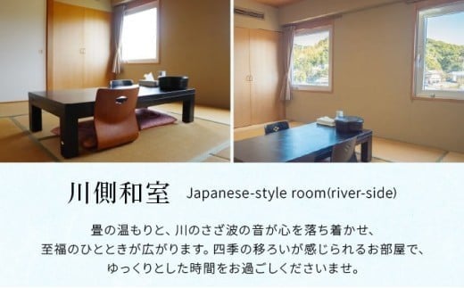 畳の温もりと、川のさざ波の音が心を落ち着かせ至福とひとときが広がります
