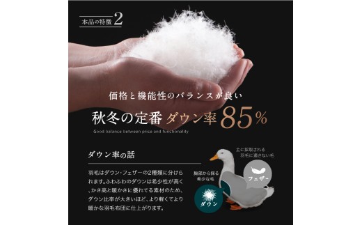 ホワイトダックダウン85%の羽毛を使用した秋冬用の羽毛布団です。
