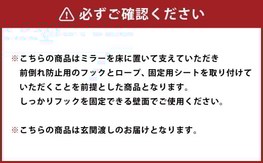 ※こちらの商品はミラーを床に置いて支えていただき前倒れ防止用のフックとロープ、 固定用シートを取り付けていただくことを前提とした商品となります。
