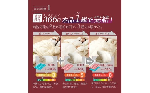 夏掛け+合掛けの2枚セットで、季節に合わせて使い分け可能。